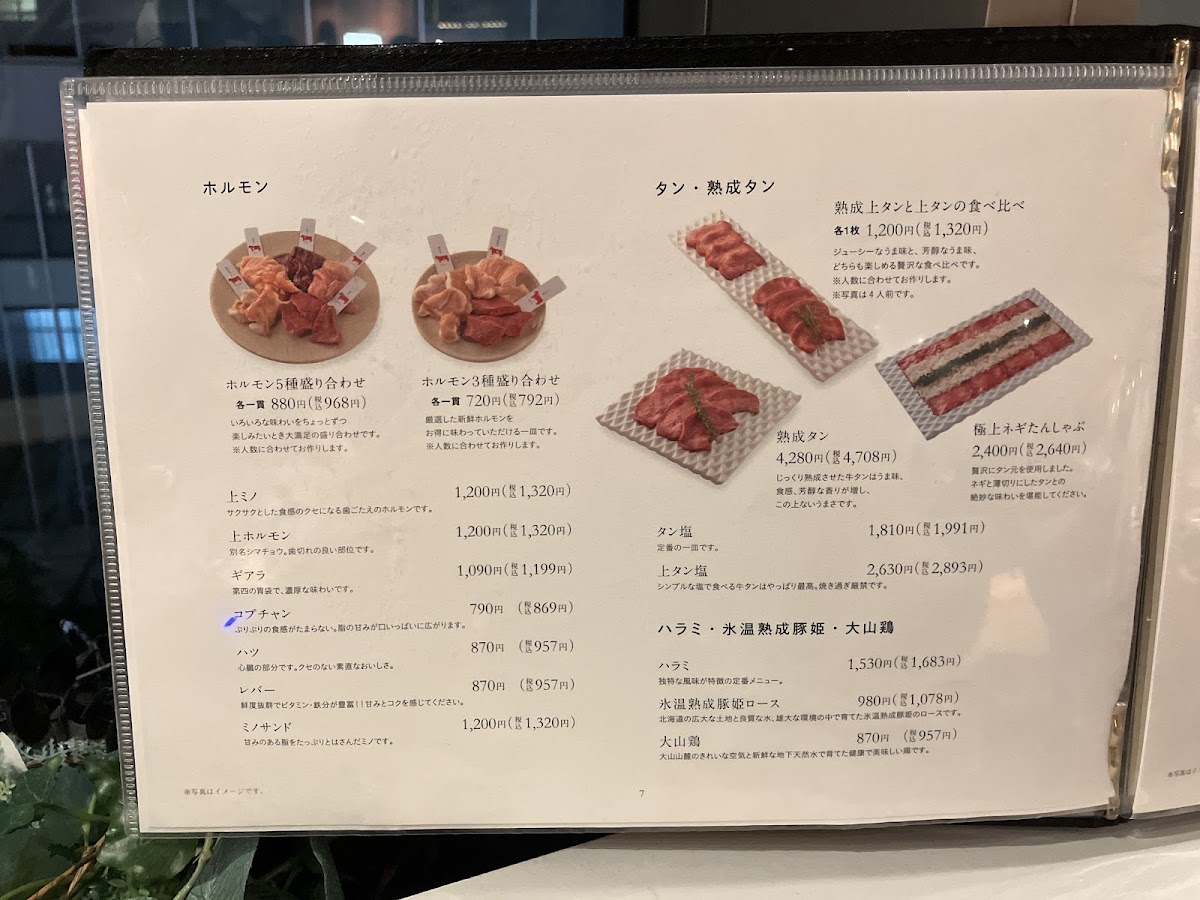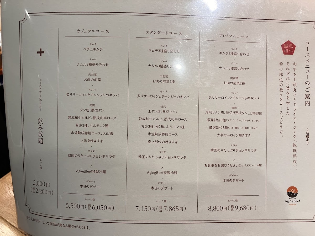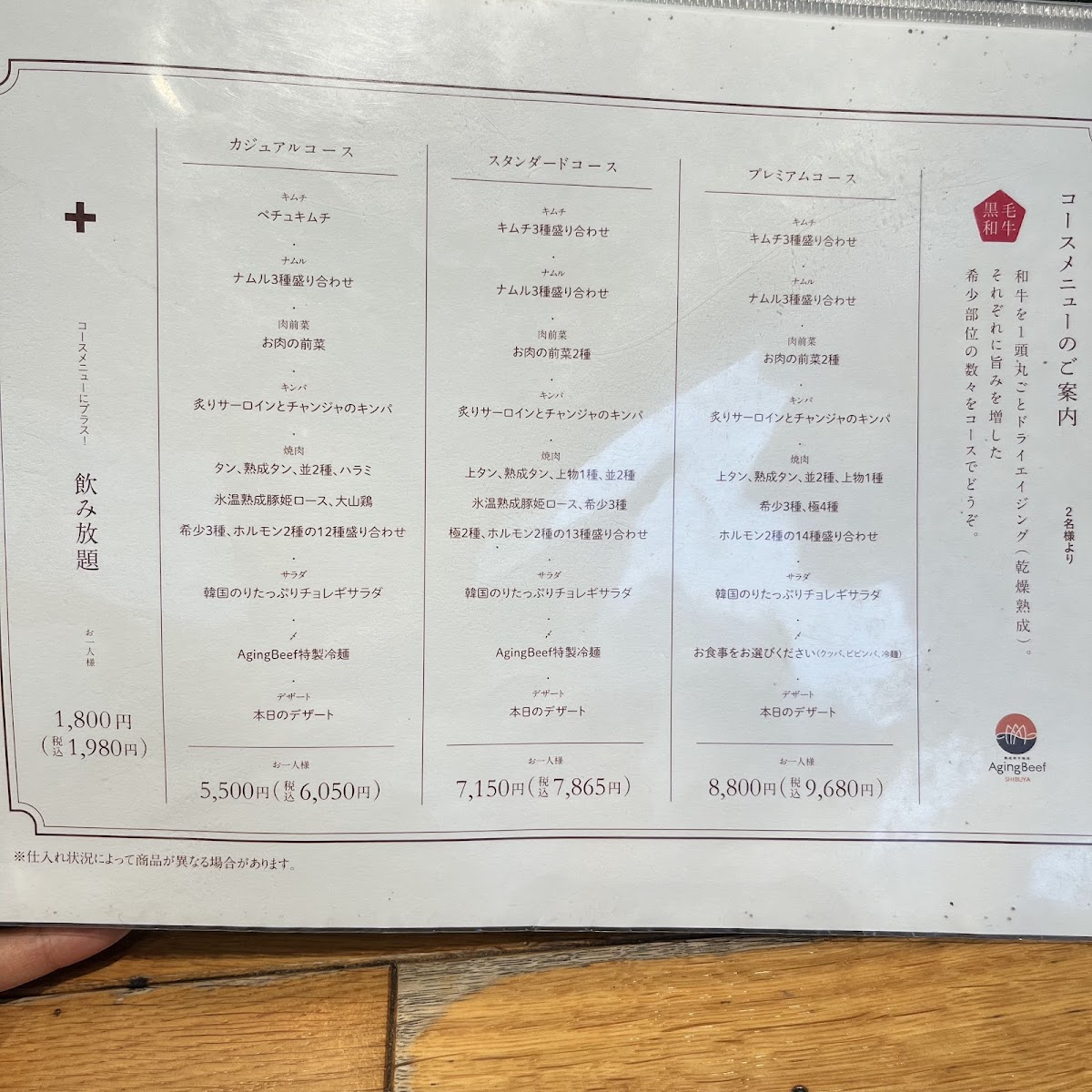 From a reviewer’s perspective, the menu at Jukusei Wagyu Yakiniku Aging Beef Shibuya feels like a carefully curated summary of what the restaurant does best: refined aging techniques, premium wagyu, and balanced flavors that respect Japanese yakiniku tradition. The highlight is the エイジングおすすめ熟成和牛7種盛り合わせ(一人前), a thoughtfully composed platter that showcases seven different cuts of aged wagyu, allowing diners to clearly experience the depth of flavor, tenderness, and aroma achieved through the aging process. For those who enjoy variety beyond red meat, the ホルモン5種盛り合わせ(各一貫) offers an interesting contrast, presenting five types of horumon, each with its own texture and richness, grilled simply to emphasize their natural character. Complementing the grilled selections, the キムチ3種盛り合わせ provides a refreshing, slightly spicy balance that cleanses the palate between bites of beef. Meanwhile, the 熟成和牛の生ハムと旬野菜のAgingbeefサラダ stands out as a lighter yet elegant option, combining delicate slices of aged wagyu prosciutto with seasonal vegetables, adding freshness and visual appeal to the meal. Overall, this menu feels cohesive and purposeful, offering both indulgence and balance, and effectively summarizing the restaurant’s philosophy of elevating wagyu through aging, thoughtful preparation, and harmonious side dishes.